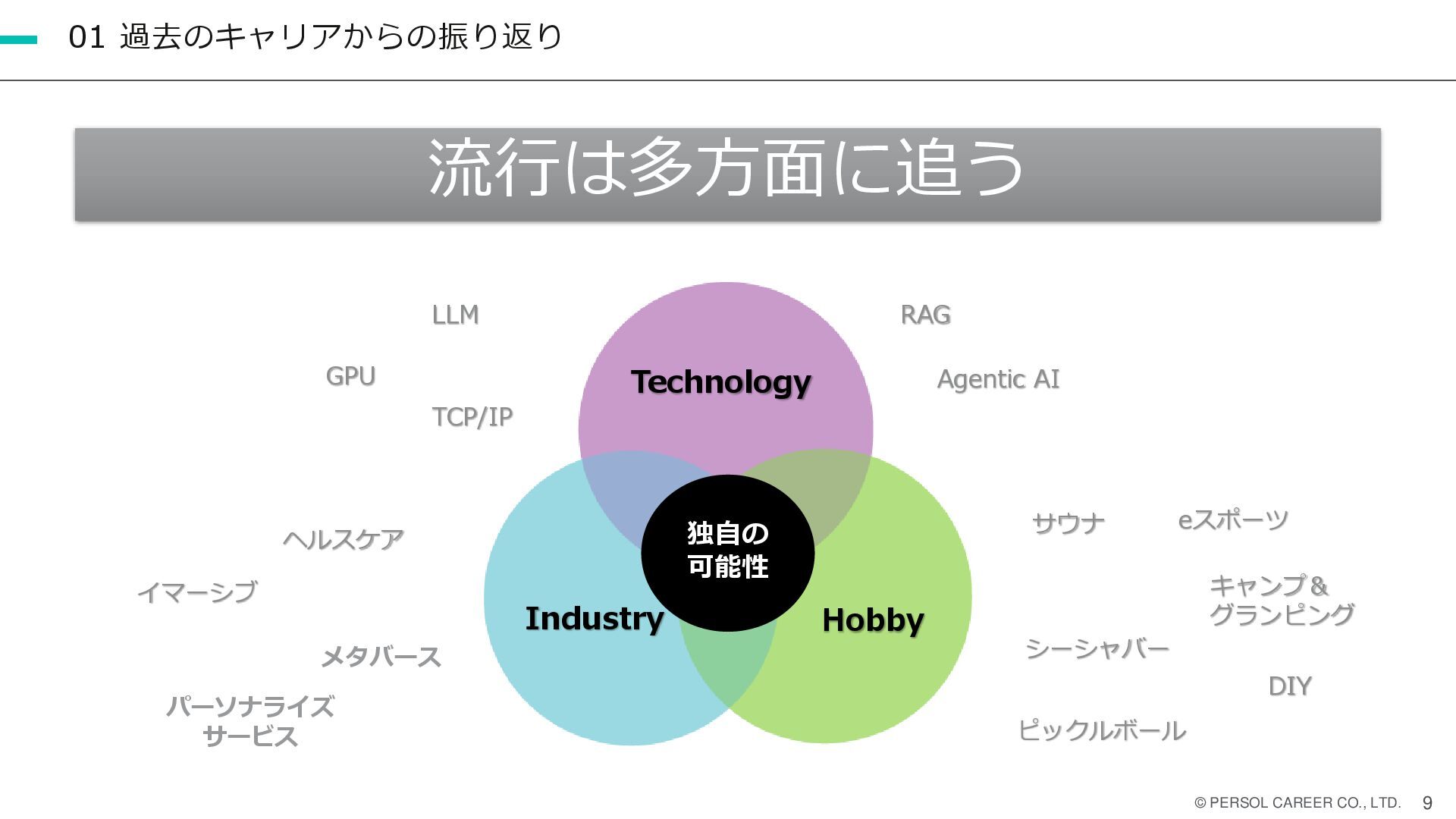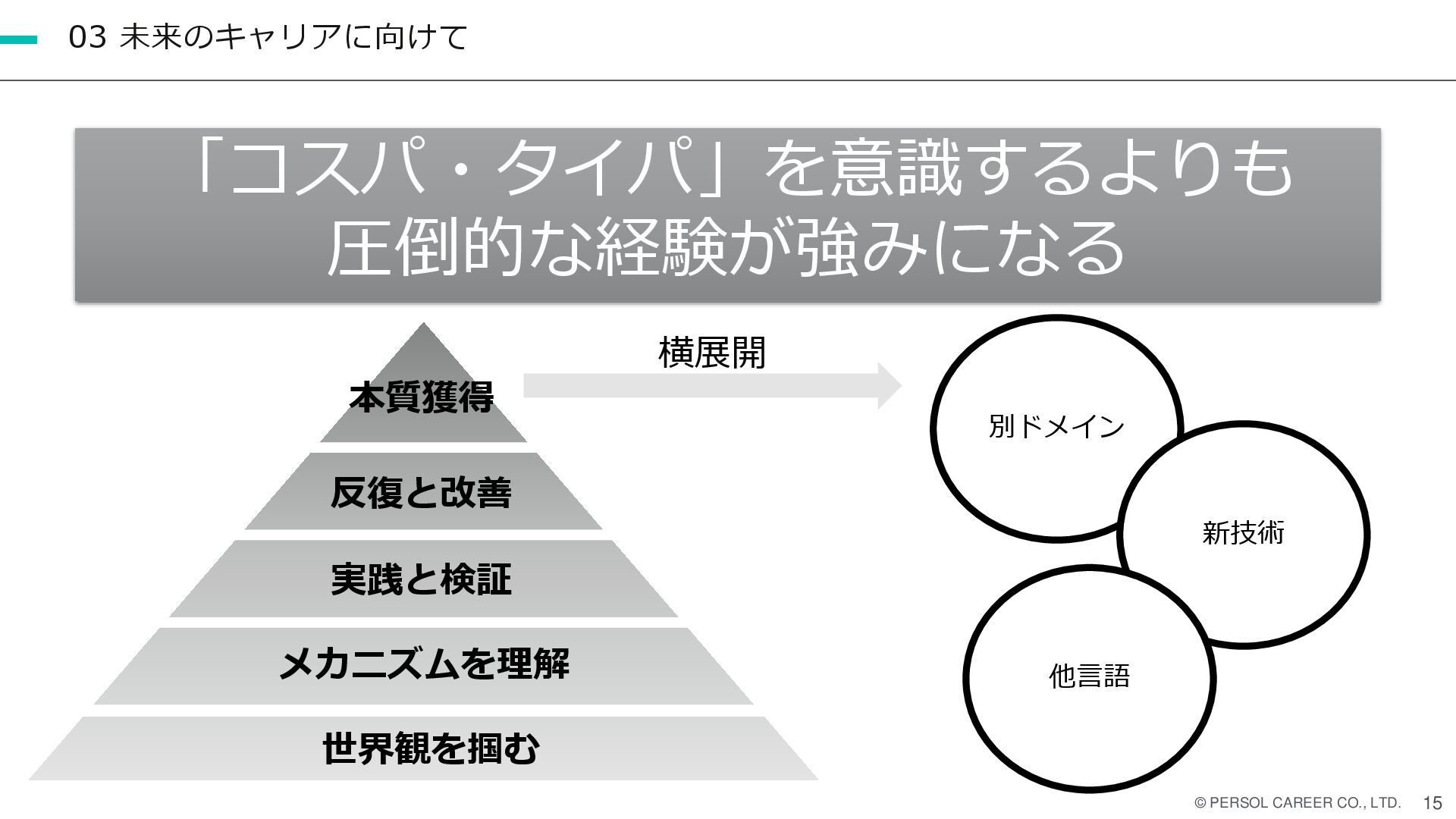 下記の過去、現在、未来について自分の経験からキャリアを積み上げてきた例や今後の考え方の資料となります。