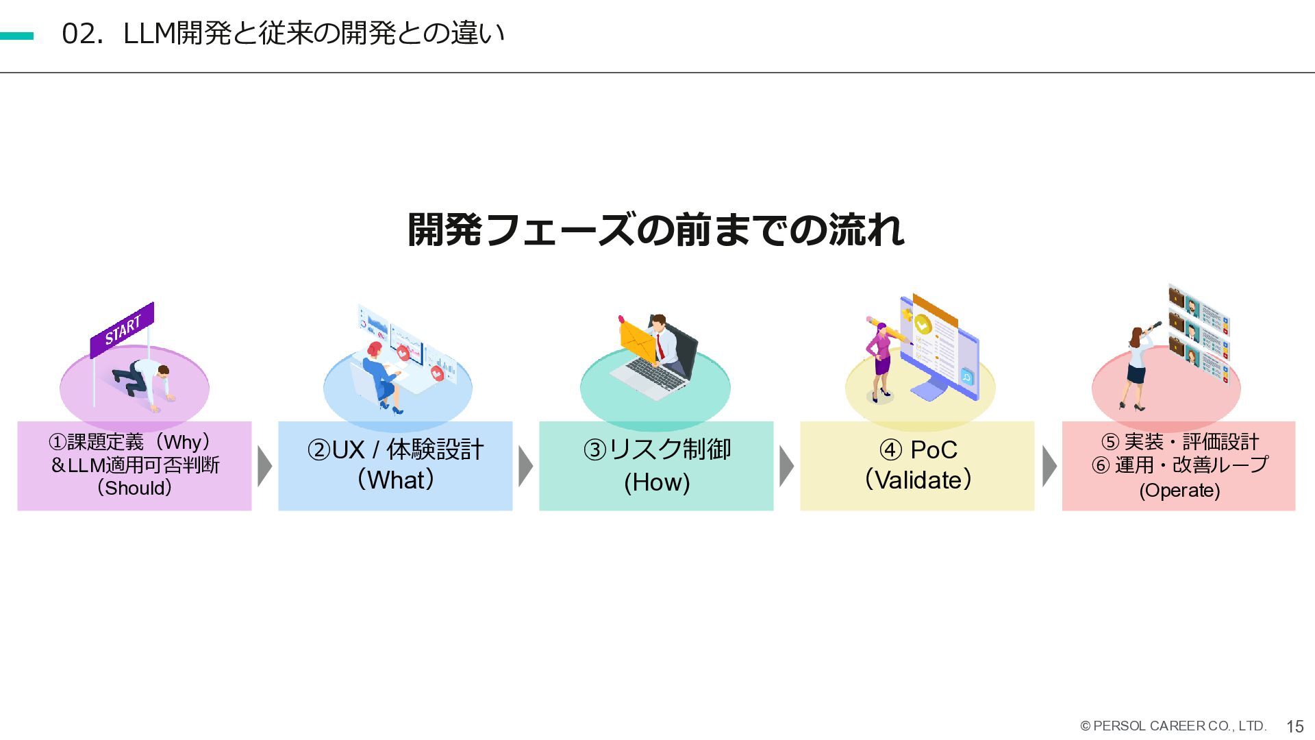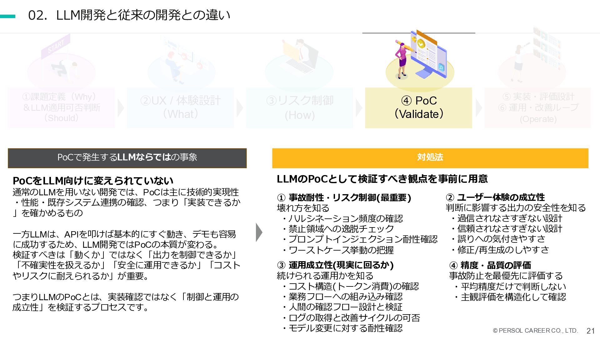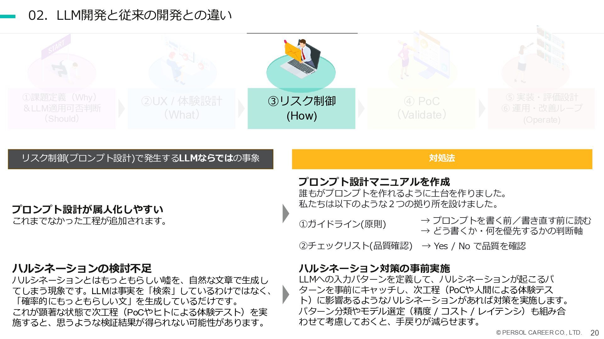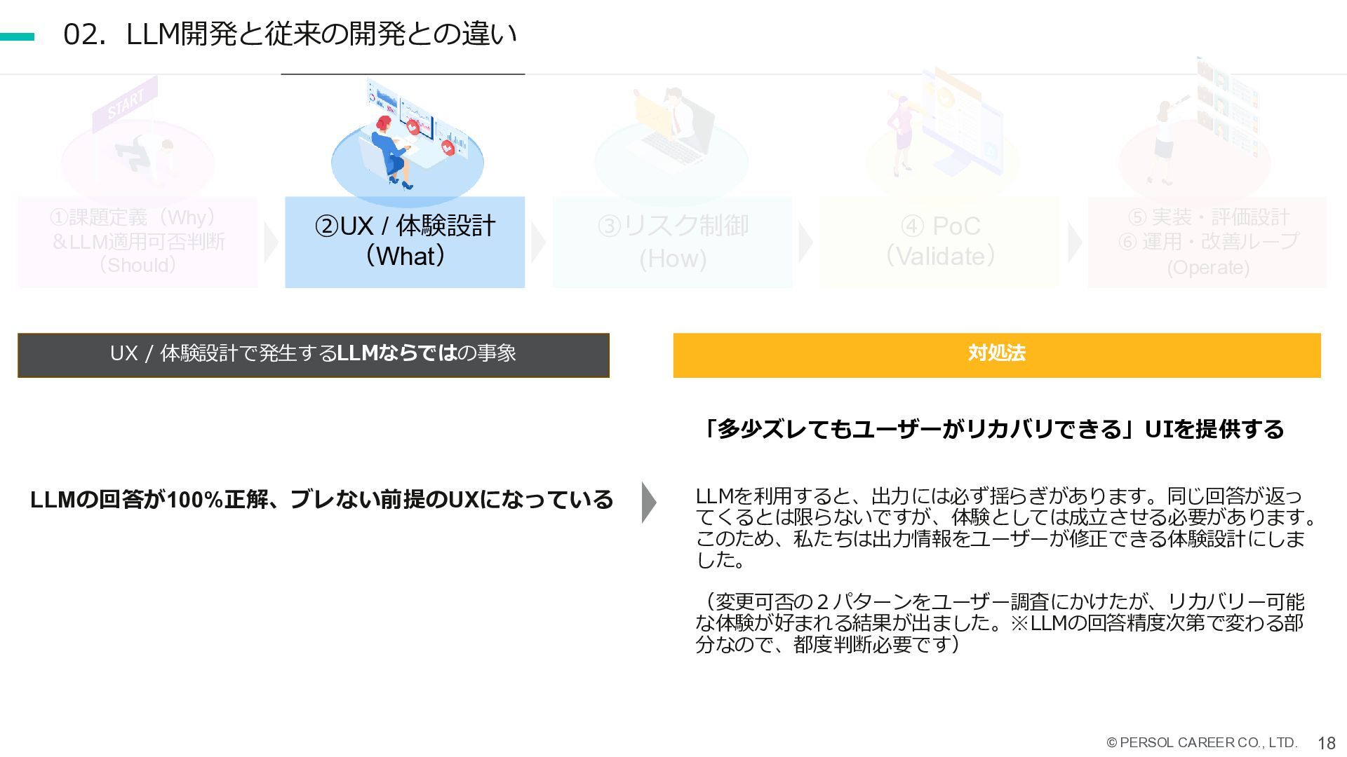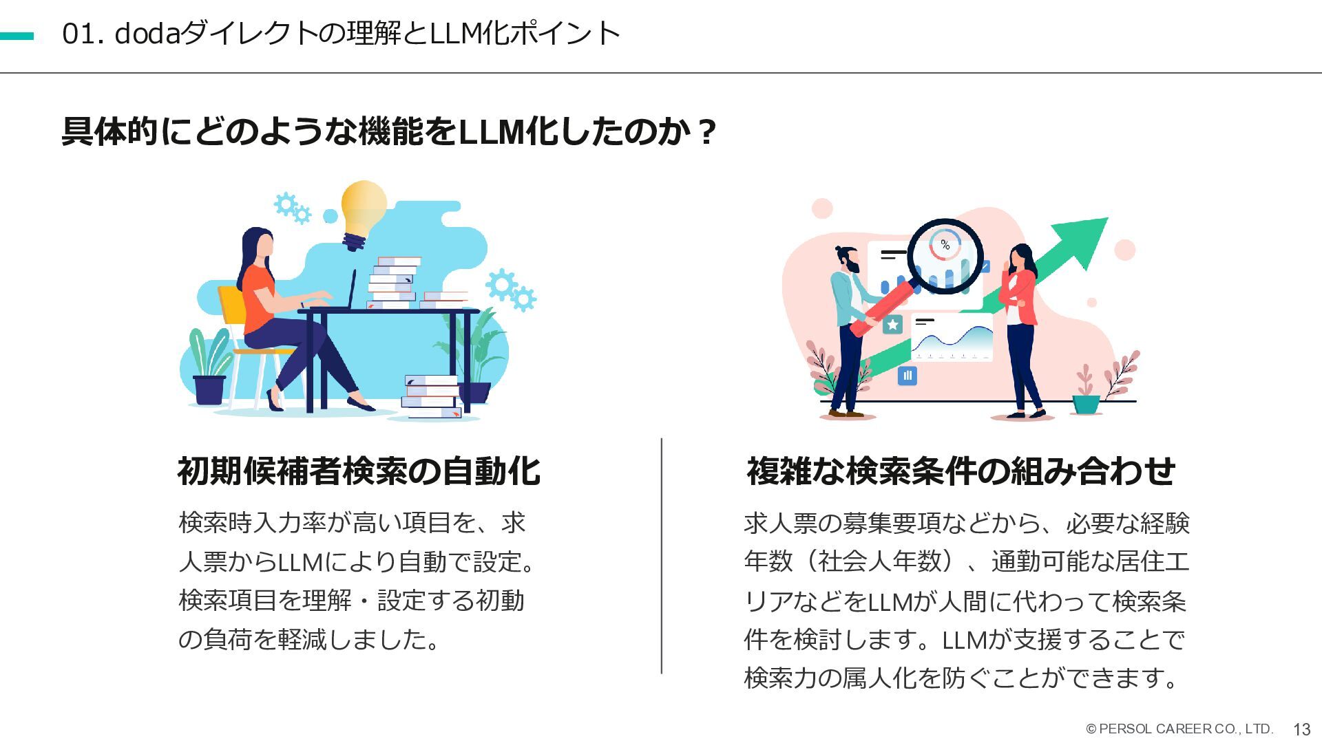 本資料は、LLM(大規模言語モデル)を使った開発をこれから始める人向けに、基本的な考え方をできる限りわかりやすくまとめたものです。dodaダイレクトの事例を通して、LLMが得意なこと・苦手なことや、従来の開発との違いを紹介しています。特に、「AIを使うこと」自体を目的にせず、ユーザーが安心して使える体験や、運用・リスクを考えながら進めることの大切さを解説しています。