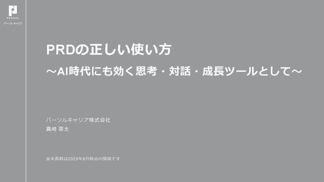 PRDは単なるドキュメントでなく、コミュニケーションツールであり、思考ツールであるということ。それに加えて、実はPdMの育成にも利用できるツールだと考えています。パーソルキャリアで実践しているPRD活用についてご紹介いたします。