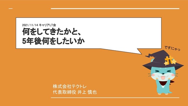 2021/11/14 キャリアLT会 何をしてきたかと、 5年後何をしたいか 株式会社テクトレ 代表取締役 井上 慎也 ですにゃっ
