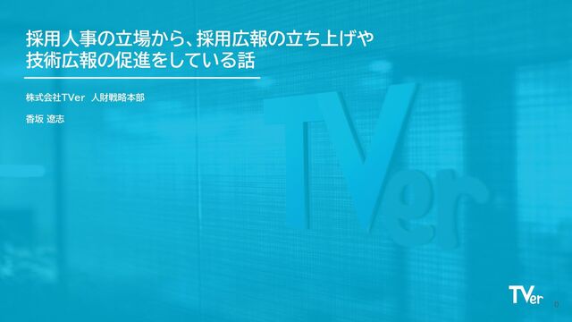 採用人事の立場から、採用広報の立ち上げや 技術広報の促進をしている話 株式会社TVer 人財戦略本部 香坂 遼志 0