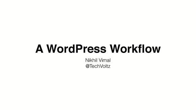 A WordPress Workflow Nikhil Vimal @TechVoltz