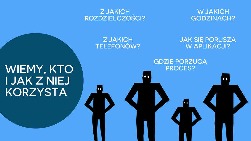 więcej o tym, jakie są ich wzorce zakupowe poznaliśmy kontekst używania naszej aplikacji wiemy, jakie grupy użytkowników w jaki korzystają z naszej aplikacji się ZESPÓŁ UŻYTKOWNICY JEST BARDZIEJ ŚWIADOMY PRODUKTU I BARDZIEJ ROZUMIE LUDZI, KTÓRZY Z NIEGO KORZYSTAJĄ PEWNIEJ PODEJMUJE DECYZJE W DUCHU UCD POTRAFI ZREWIDOWAĆ SŁUSZNOŚĆ WYTYCZNYCH BIZNESOWYCH BĘDĄ OTRZYMYWALI ROZWIĄZANIA, KTÓRE SĄ BARDZIEJ ZGODNE Z NAWYKAMI I ZWYCZAJAMI MOBILNYMI POCZUJĄ SIĘ LEPIEJ ZROZUMIANI PRZEZ TWÓRCÓW PRODUKTU BĘDĄ CHĘTNIEJ I CZĘŚCIEJ KORZYSTAĆ Z APLIKACJI
