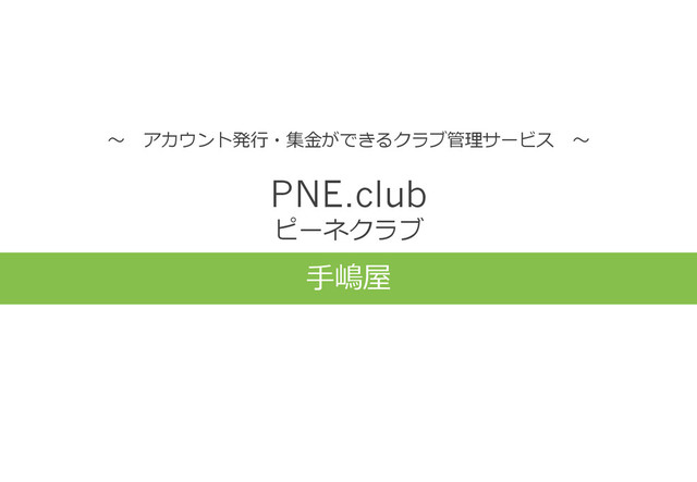 〜~ アカウント発⾏行行・集⾦金金ができるクラブ管理理サービス 〜~ PNE.club ピーネクラブ ⼿手嶋屋