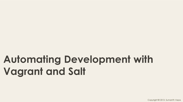 Salt+Vagrant: nygaard.quora.com/Using-Vagrant-and-Salt-stack-together milestone42.com Consulting and software services for development operations and automation.