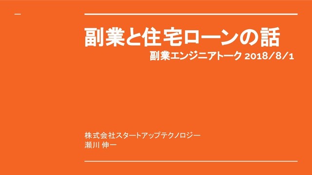 副業と住宅ローンの話 副業エンジニアトーク 2018/8/1 株式会社スタートアップテクノロジー 瀬川 伸一