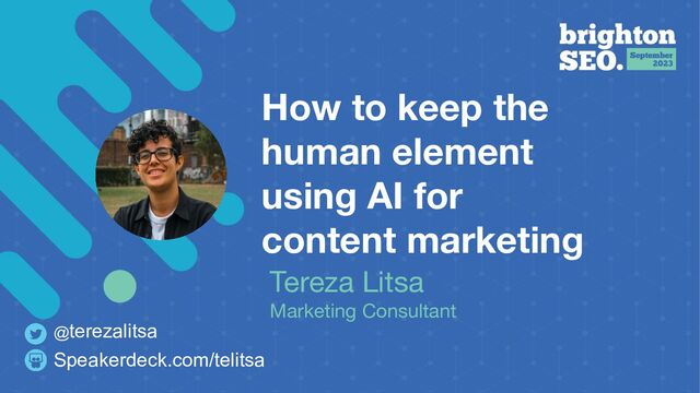 #BrightonSEO @terezalitsa Humans + AI in content marketing and SEO