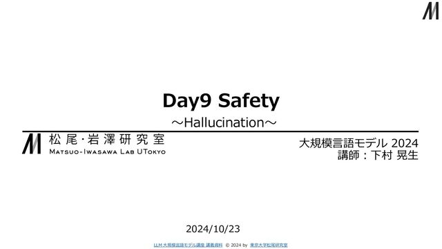 義 資 料 LLM 東 京 大 学 松 尾 研 究 室 LLM 大規模言語モデル講座 講義資料 © 2024 by 東京大学松尾研究室 Reference 47 [1]Fiona Macpherson (ed.),Dimitris Platchias (ed.) “Hallucination: Philosophy and Psychology” The MIT Press:9 August 2013 [2] Katja Filippova. 2020. Controlled Hallucinations: Learning to Generate Faithfully from Noisy Data. In Findings of the Association for Computational Linguistics: EMNLP 2020, pages 864–870, Online. Association for Computational Linguistics. [3] Joshua Maynez et al., (2020). On Faithfulness and Factuality in Abstractive Summarization. In Proceedings of the 58th Annual Meeting of the Association for Computational Linguistics, pages 1906–1919, Online. Association for Computational Linguistics. [4] Sourav Banerjee et al.,(2024) “LLMs Will Always Hallucinate, and We Need to Live With This” arXiv:2409.05746v1 [5] Lei Huang et al.,(2023) “A Survey on Hallucination in Large Language Models: Principles, Taxonomy, Challenges, and Open Questions” arXiv: 2311.05232 [6] Common Crawl Common Crawl Get Started アクセス日 2024.1011 [7] 松尾岩澤研究室 大規模言語モデルDeep Learning応用講座2024|Fall アクセス日2024.1011 [8] Stephanie Lin et al.,(2021) “TruthfulQA: Measuring How Models Mimic Human Falsehoods” arXiv: 2109.07958 [9] Danny Hernandez et al.,(2022) “Scaling Laws and Interpretability of Learning from Repeated Data” arXiv: 2205.10487 [10] Faisal Ladhak et al.,(2023) ”When Do Pre-Training Biases Propagate to Downstream Tasks? A Case Study in Text Summarization” In Proceedings of the 17th Conference of the European Chapter of the Association for Computational Linguistics, pages 3206–3219, Dubrovnik, Croatia. Association for Computational Linguistics. [11] Cheongwoong Kang and Jaesik Choi. 2023. Impact of Co-occurrence on Factual Knowledge of Large Language Models. In Findings of the Association for Computational Linguistics: EMNLP 2023, pages 7721–7735, Singapore. Association for Computational Linguistics. [12] Kandpal, N et al.,(2023). “Large Language Models Struggle to Learn Long-Tail Knowledge”Proceedings of the 40th International Conference on Machine Learning, Proceedings of Machine Learning Research :202:15696-15707 [13] Kewei Cheng et al.,(2024) “Inductive or Deductive? Rethinking the Fundamental Reasoning Abilities of LLMs” arXiv:2408.00144 [14] Zuchao Li et al.,(2023) “BatGPT: A Bidirectional Autoregressive Talker from Generative Pre-Trained Transformer” arXiv: 2307.00360 [15] Bingbin Liu et al.,(2023) “Exposing Attention Glitches with Flip-Flop Language Modeling” arXiv: 2306.00946 [16] Tianzhu Ye et al.,(2024) “Differential Transformer” arXiv: 2410.05258 [17] John Schulman “John Schulman –Reinforcement Learning from Human Feedback: Progress and Challenges” YouTube Berkely EECS Channel [18] Ajeya Cotra(2021) “Why AI alignment could be hard with modern deep learning” Cold Takes アクセス日 2024.0920 [19] Ethan Perez et al.,(2022) “Discovering Language Model Behaviors with Model-Written Evaluations” arXiv:2212.09251 [20] Jerry Wei et al.,(2023) “Simple synthetic data reduces sycophancy in large language models” arXiv: 2308.03958 [21] Nouha Dziri et al.,(2021) “Nueral path Hunter: Reducing Hallucination in Dialogue Systems via Path Grounding” arXiv:2104.08455 [22] Yung-Sung Chuang et al.,(2023) “DoLa: Decoding by Contrasting Layers Improves Factuality in Large Language Models” arXiv: 2309.03883 [23] Yung-Sung Chuang et al.,(2024) “Lookback Lens: Detecting and Mitigating Contextual Hallucinations in Large Language Models Using Only Attention Maps” arXiv: 2407.07071 [24] Selvan Sunitha Ravi et al.,(2024) “Lynx: An Open Source Hallucination Evaluation Model” arXiv:2407.08488 [25] OpenAI “Finding GPT-4’s mistakes with GPT-4” アクセス日 2024.0920 [26] Nat McAleese et al.,(2024) “LLM Critics Help Catch LLM Bugs” arXiv: 2407.00215 [27] Potsawee Manakul et al.,(2023) “SelfCheckGPT: Zero-Resource Black-Box Hallucination Detection for Generative Large Language Models” arXiv:2303.08896