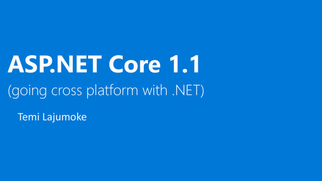 - Software Developer • Focused on ASP.NET core. • I speak C# and JavaScript. • Fiddle around Node js, Angular and the MEAN stack generally • UWP and Xamarin. - Microsoft Certified Professional. IBM Big data professional -Periodic blogger http://gooroo.io/g/temilajumoke http: //temilajumoke.com