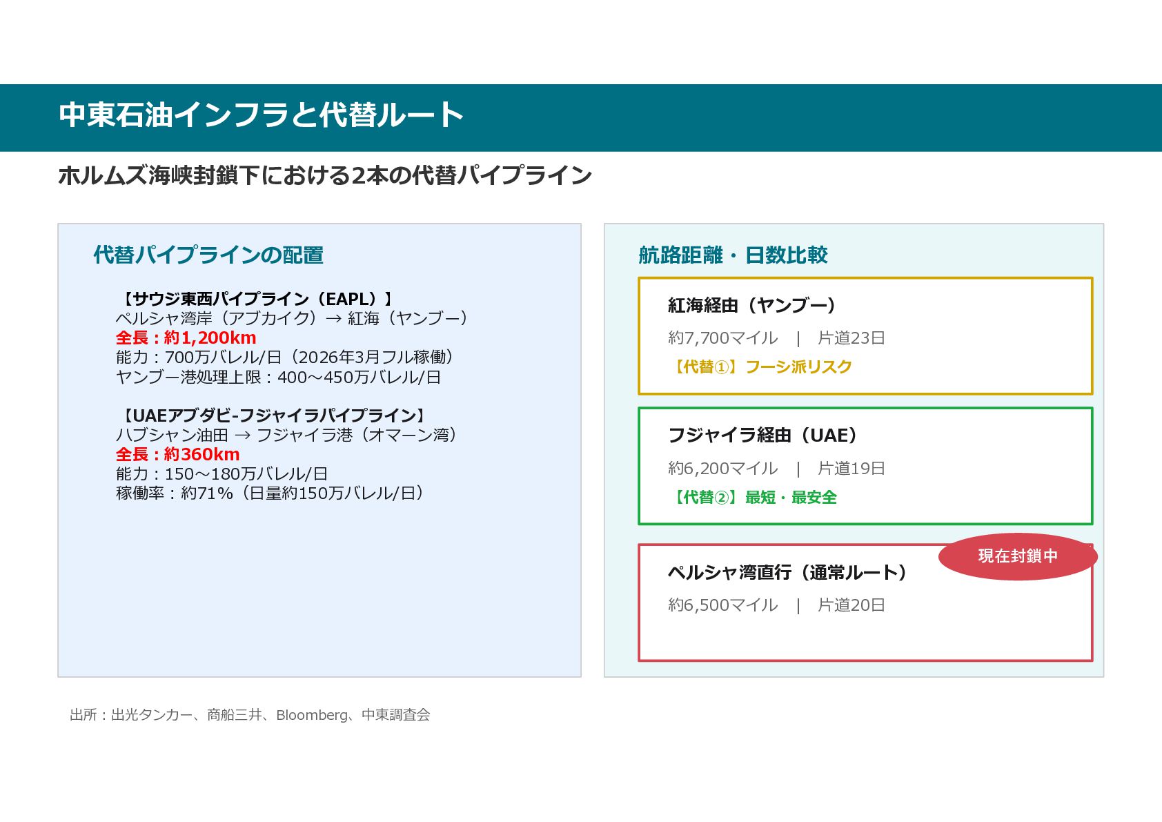 最近、国民民主党の山田先生が「ホルムズ海峡を通らない中東からの原油輸入ルート」として、「サウジ東西パイプライン」と「UAEアブダビ-フジャイラPL」のお話をされていました。お話の内容としては、バル・エル・マンデブ海峡を守ることも重要、というご指摘だったのですが、そもそもこの代替ルートでどの程度の確保ができるのか、考えてみました。