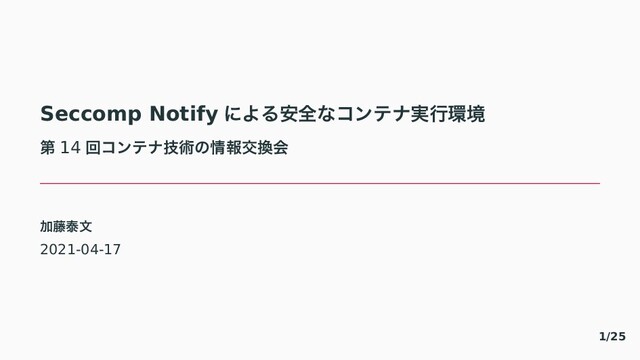 「第14回コンテナ技術の情報交換会@オンライン」の発表資料です。 参考となる情報にはPDF中からリンクをしていますが、資料中のリンクは Speaker Deck 上ではクリックできないので PDF をダウンロードしてご覧ください。