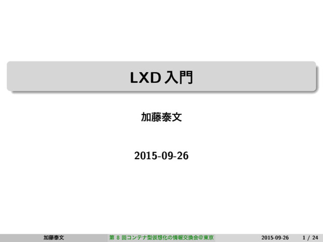 第8回コンテナ型仮想化の情報交換会の発表資料です。 参考となる情報にはPDF中からリンクをしていますが、資料中のリンクは Speaker Deck 上ではクリックできないので PDF をダウンロードしてご覧ください。