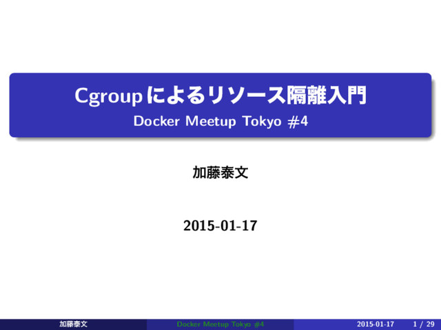 docker run -d --cpu-shares=1000 ubuntu sh -c "while :; do true; done" 475eff102bf1981d19567dc64b2c922f4f2adade164656a243de8c8b72330733 $ docker run -d --cpu-shares=100 ubuntu sh -c "while :; do true; done" 744a5282eac4c5faa799bce66e461dfe758e2ea64009e8780bc14a02163e5d05 CPU ͷ༻ঢ়گ PID USER PR NI VIRT RES SHR S %CPU %MEM TIME+ COMMAND 2597 root 20 0 4444 396 316 R 90.7 0.0 0:09.71 sh 2633 root 20 0 4444 400 316 R 9.0 0.0 0:00.38 sh େମࢦఆ௨Γͷൺ (10:1) Ͱ CPU Λ༻ Ճ౻ହจ Docker Meetup Tokyo #4 2015-01-17 17 / 29