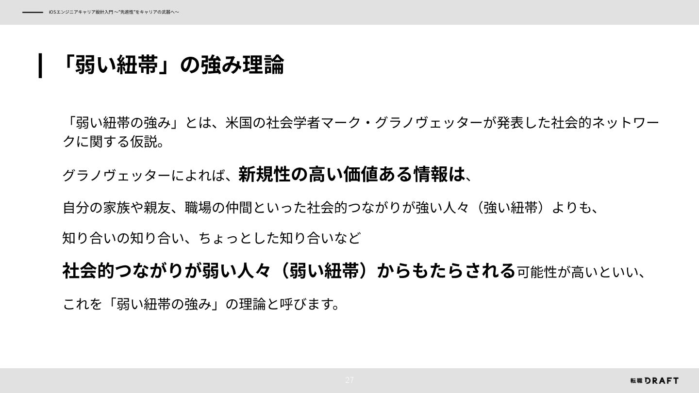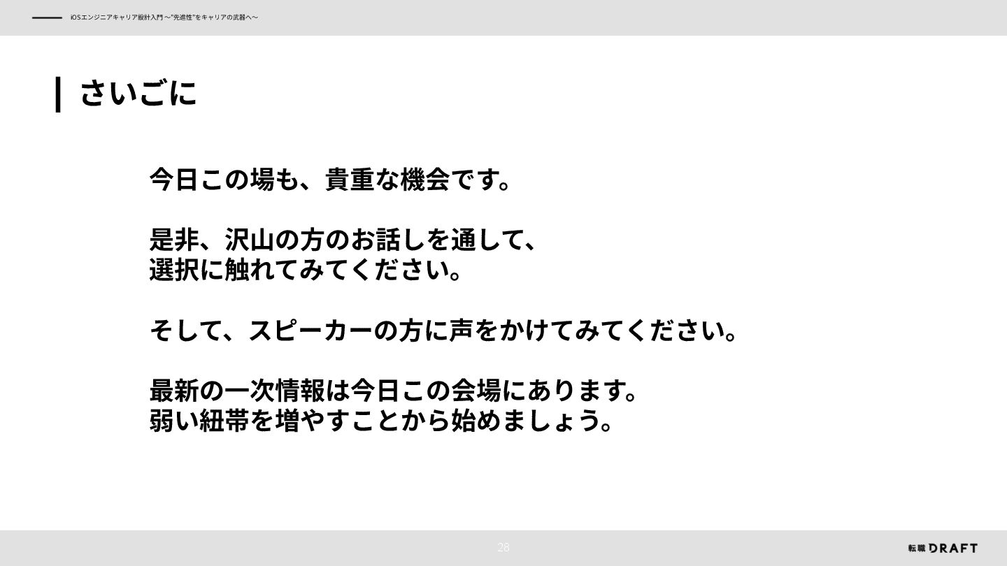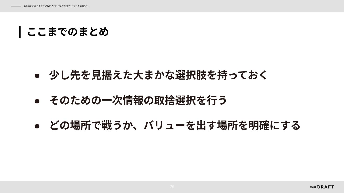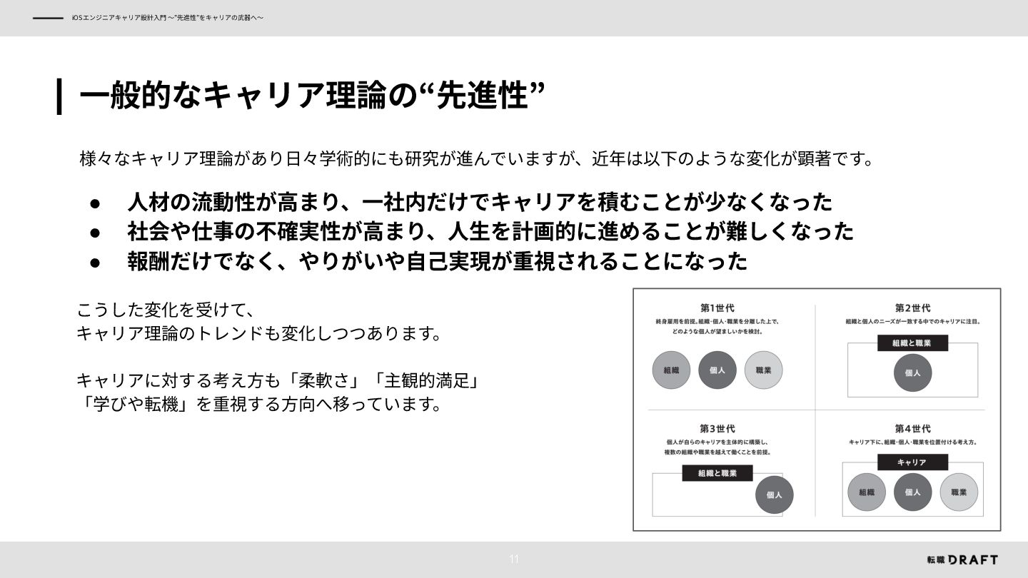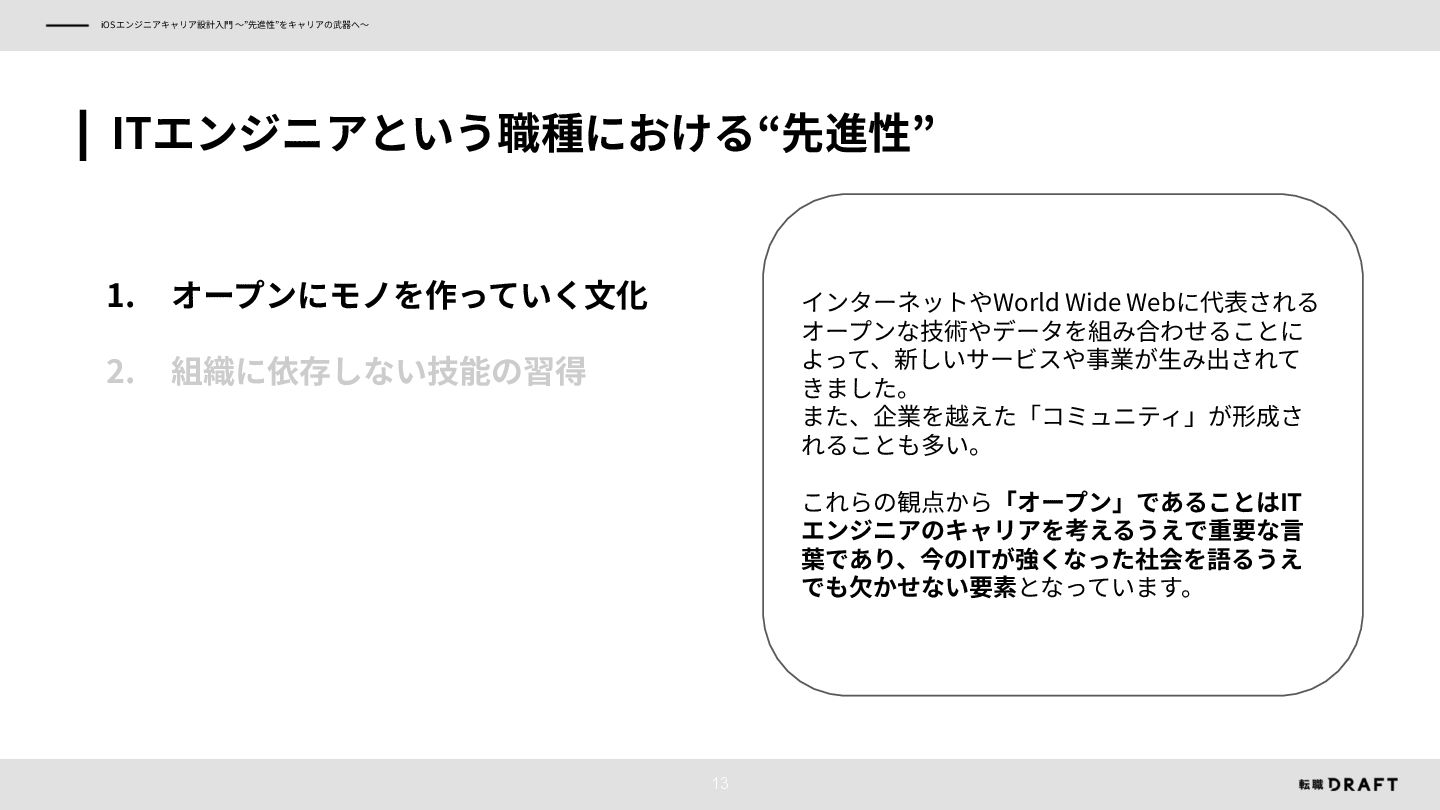そのヒントは、iOS技術やエンジニアのキャリアにおける"先進性"と、転職ドラフトが提唱するマインドセット「探索型キャリア」の融合にあります。