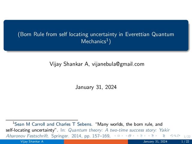 The Many-Worlds Interpretation is a deterministic formulation of quantum mechanics, which focuses on the wave nature and thus unitary transformations. Being deterministic in nature, defining probabilities in it, and deriving the Born rule has been a challenge. Sean Carroll in his work uses self-locating uncertainty- the indeterminacy of the world or ‘branch’ one is located in and the Epistemic separability principle- a given result is independent of the non-interacting and remote environment. In this work, the step-by-step process of interactions with the Apparatus, the Observer, and decoherence interactions with the environment leading to the Born rule is explained transparently and concisely. The key aspect of Carroll’s work involves the observer copying oneself into as many copies as the number of worlds before the branching is complete. This is to facilitate the self-location perspective. In addition, the work also explores the cosmological consequences of the Many-World’s interpretation like the Cosmological measure problem. We also take a brief look at some of the criticisms against Carroll’s arguments by Adrian Kent.