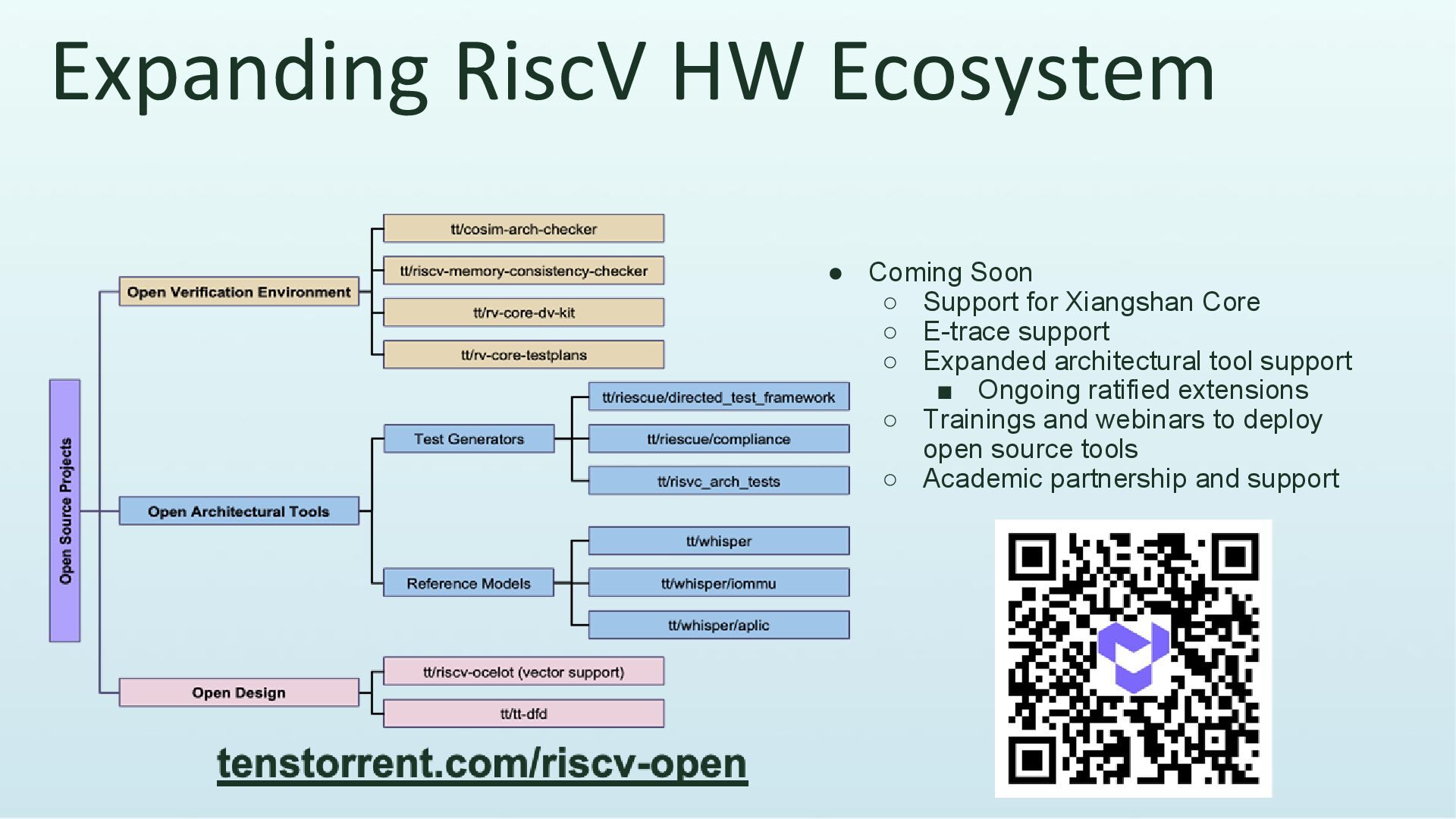 Xiangshan Core ◦ E-trace support ◦ Expanded architectural tool support ▪ Ongoing ratified extensions ◦ Trainings and webinars to deploy open source tools ◦ Academic partnership and support