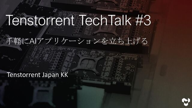 エンタープライズAIまで同じアーキテクチャ • Tensix AI アクセラレータの概要 • Tensix Coreの構成 • 計算コアのクラスタリング, NOCの動きかた • オープンかつ柔軟なSDK • Metalium: Tensix Coreのプログラミングモデルを直に制御 2 ANY AI MO DE L OPEN SOURCE OPEN SOURCE O P T I M I ZE D M L R E S U L T S CUSTOM OPS BUILD ANYTHING OPEN SOURCE OPEN SOURCE Compiler HWの成り立ちから, SWの基礎部分を解説してきた