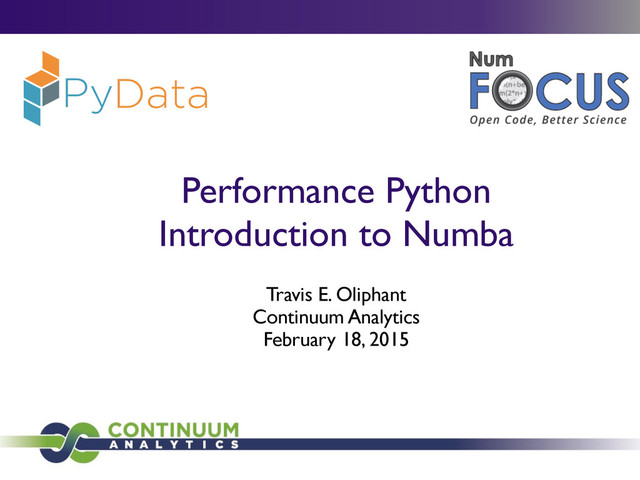 in Biomedical Engineering • MS/BS degrees in Elec. Comp. Engineering • Creator of SciPy (1998-2001) • Professor at BYU (2001-2007) • Author of NumPy (2005-2012) • Started Numba (2012) • Founding Chair of Numfocus / PyData • Current Python Software Foundation Director