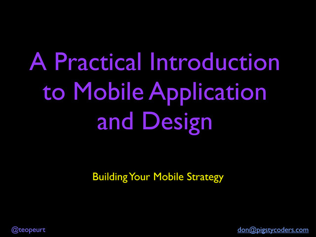 A Practical Introduction to Mobile Application and Design