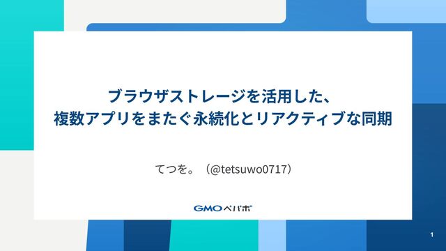 1 ブラウザストレージを活⽤した、 複数アプリをまたぐ永続化とリアクティブな同期 てつを。(@tetsuwo0717)