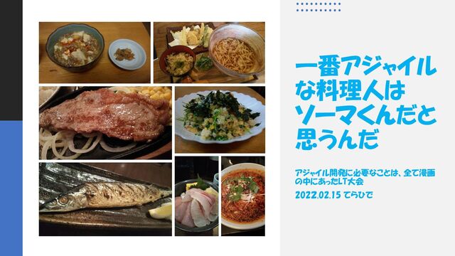 一番アジャイル な料理人は ソーマくんだと 思うんだ アジャイル開発に必要なことは、全て漫画 の中にあったLT大会 2022.02.15 てらひで
