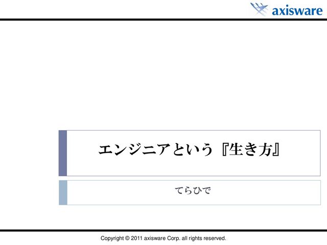 Copyright © 2011 axisware Corp. all rights reserved. エンジニアという『生き方』 てらひで