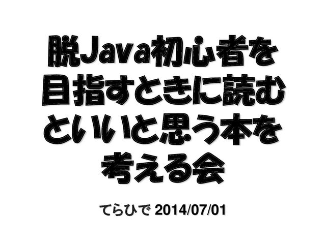 てらひで 2014/07/01 脱Java初心者を 目指すときに読む といいと思う本を 考える会
