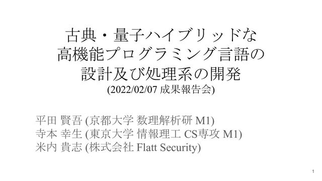 [Bichsel, B., Baader, M., Gehr, T., & Vechev, M. (2020, June). Silq: A high-level quantum language with safe uncomputation and intuitive semantics. In Proceedings of the 41st ACM SIGPLAN Conference on Programming Language Design and Implementation (pp. 286-300).] 問題点 回路レベルでの設計 言語としての設計 Qitten への実装 最終報告書に問題点や回路レベルでの設計について、まとめて記載する予定 21