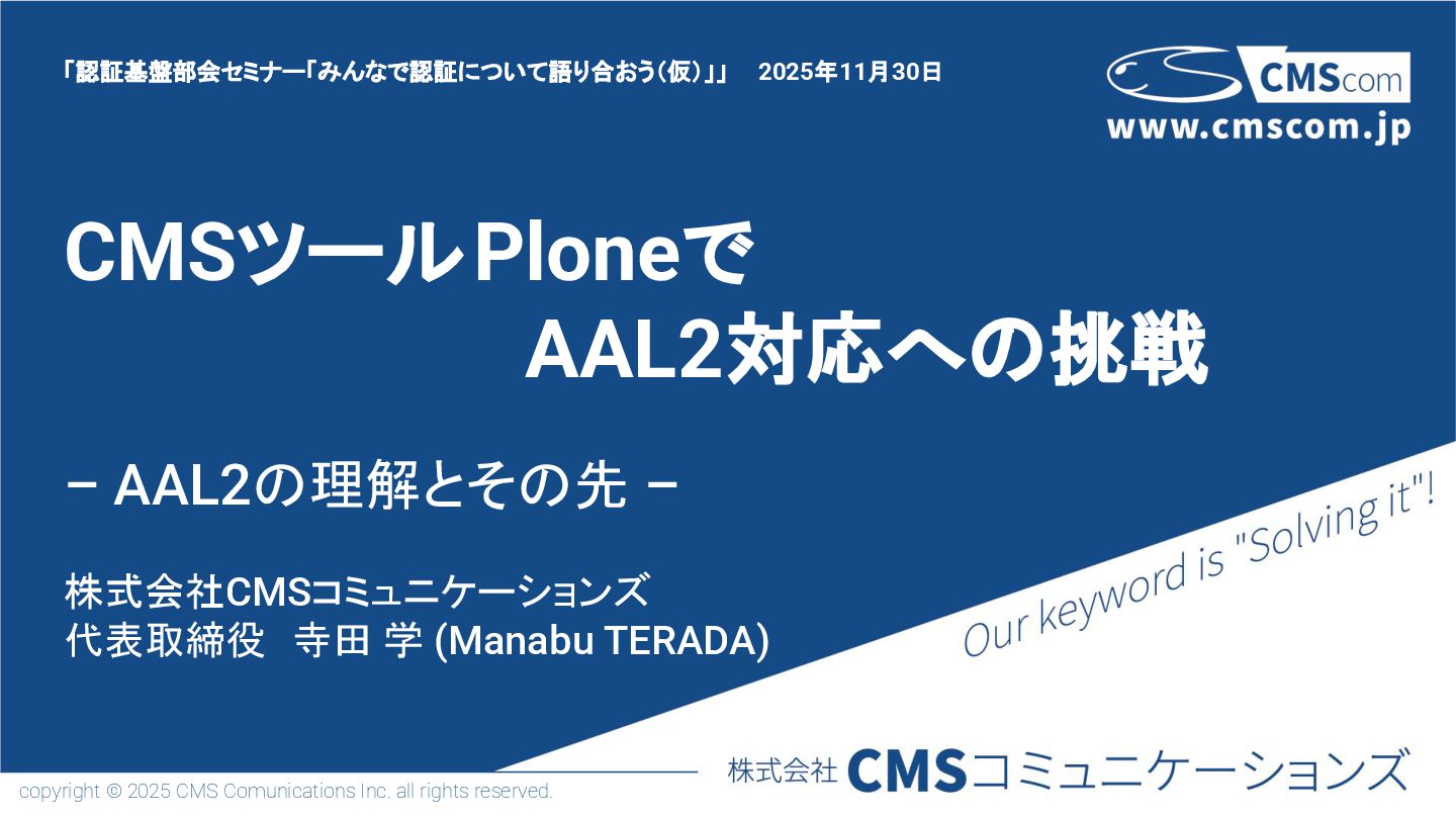 AAL2対応への挑戦 – AAL2の理解とその先 – 株式会社CMSコミュニケーションズ 代表取締役 寺田 学 (Manabu TERADA) 「認証基盤部会セミナー「みんなで認証について語り合おう(仮)」」 2025年11月30日