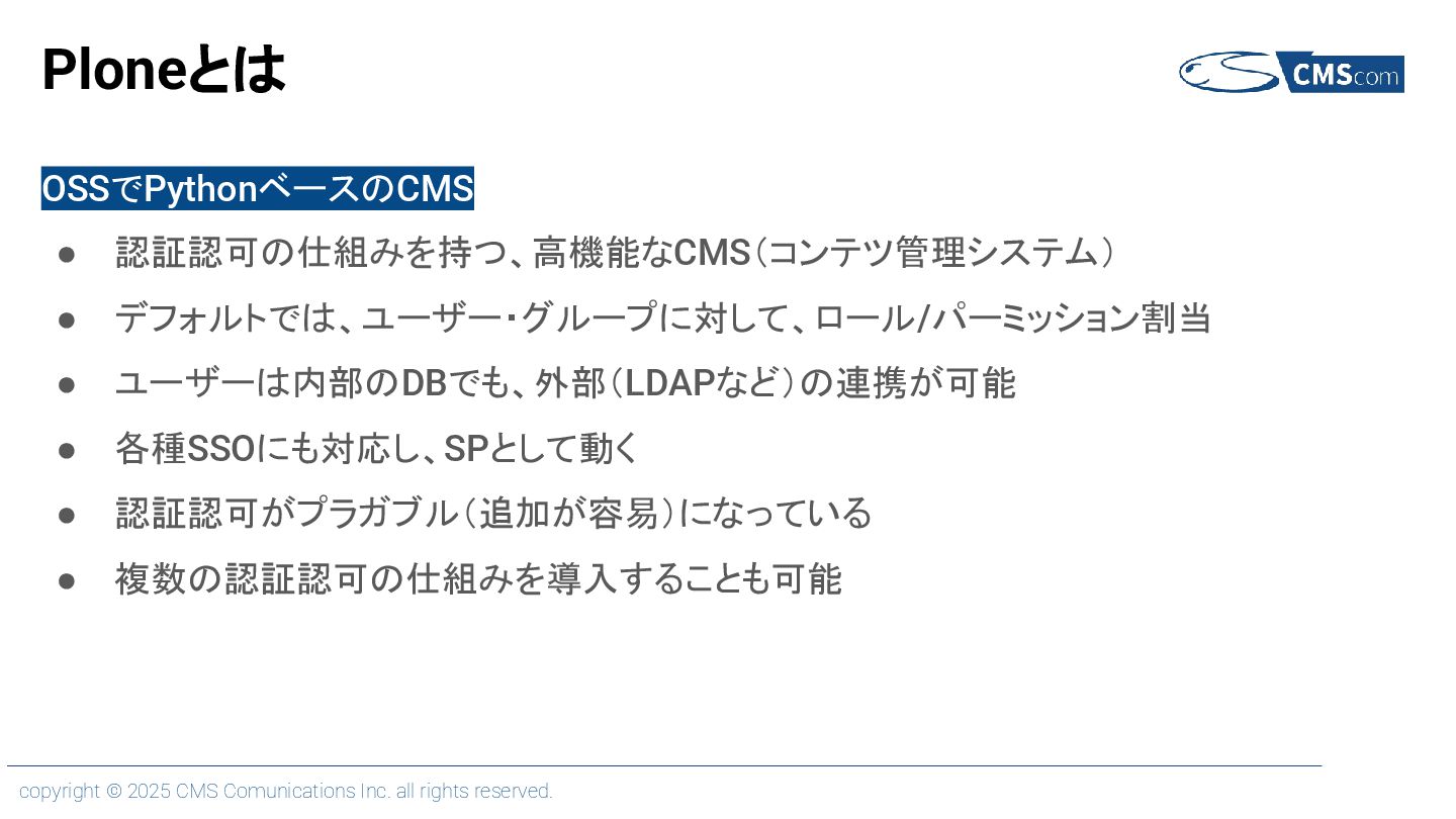copyright © 2025 CMS Comunications Inc. all rights reserved. CMSツールPloneで