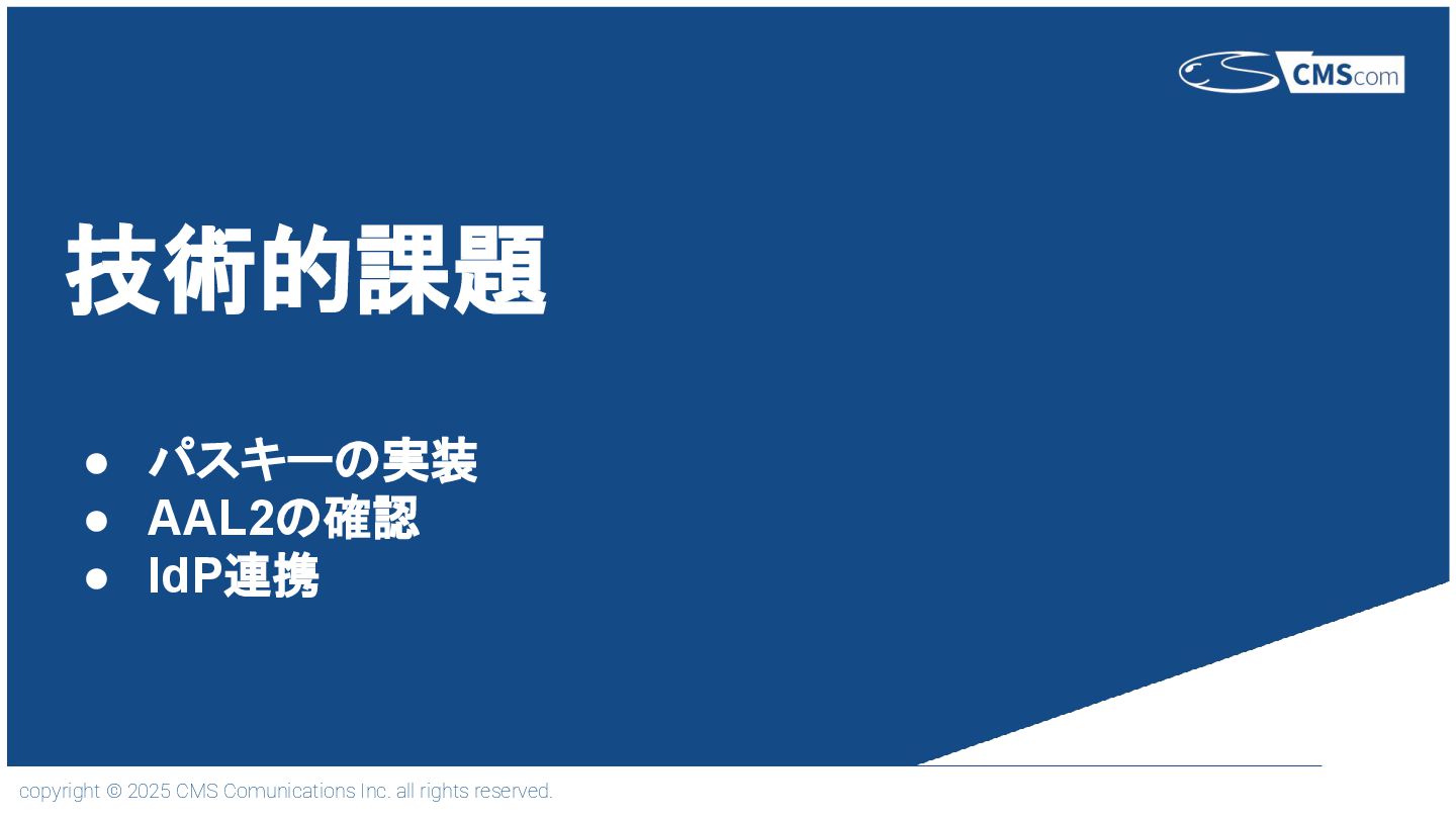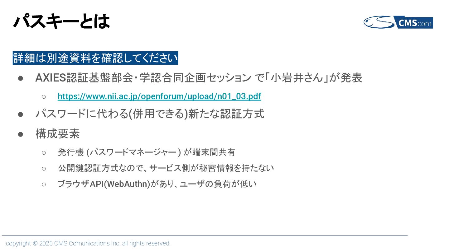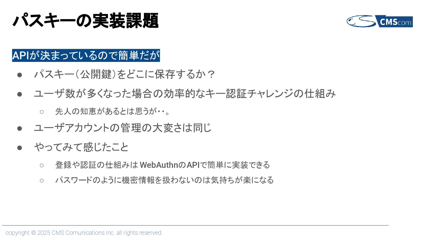 copyright © 2025 CMS Comunications Inc. all rights reserved. パスキーの実装課題