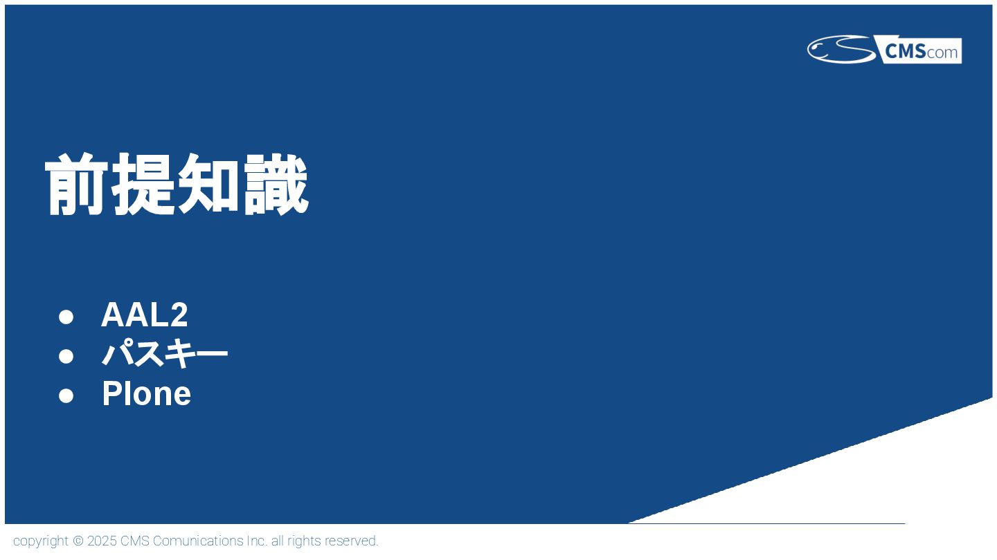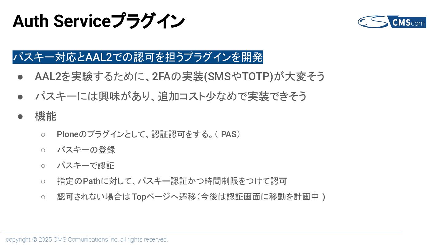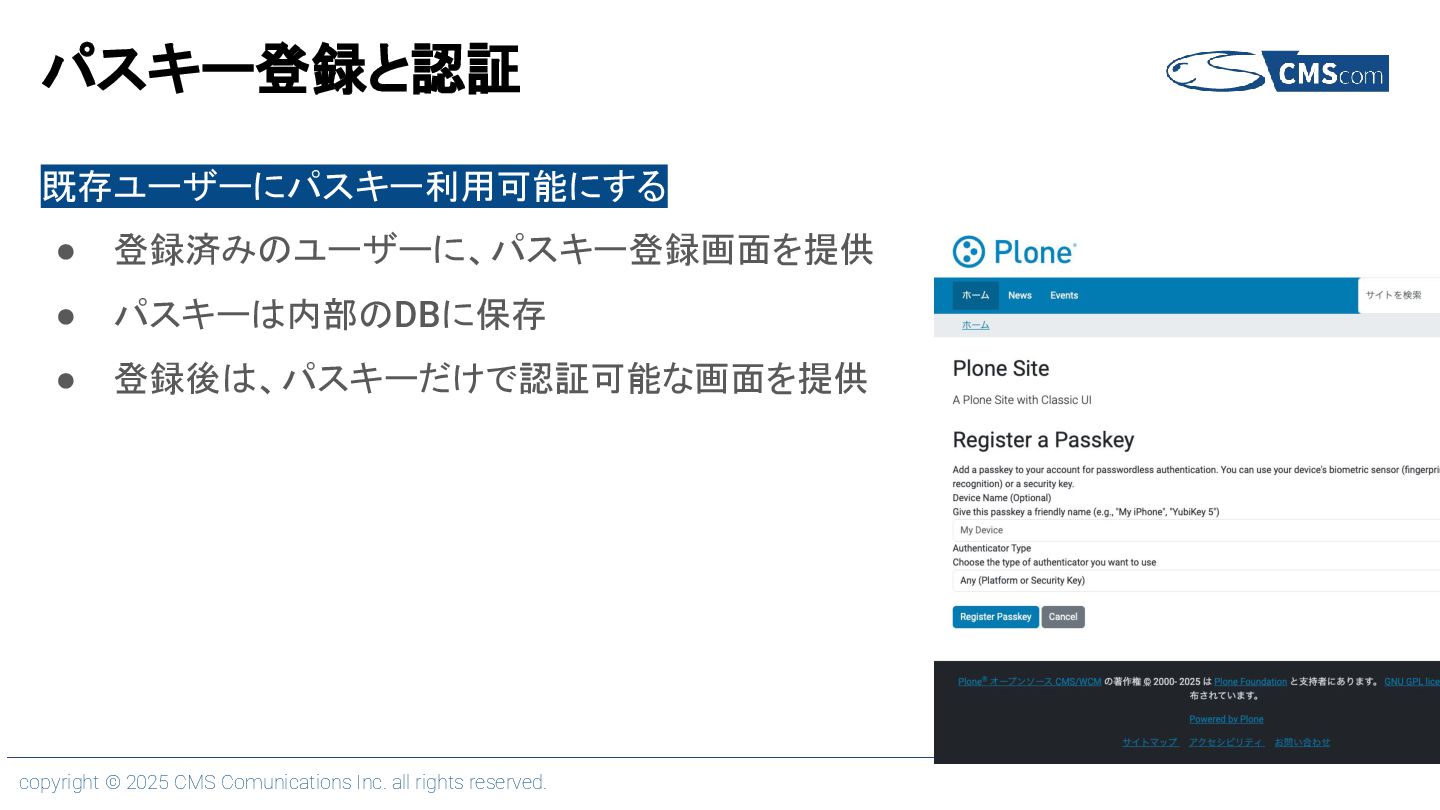 copyright © 2025 CMS Comunications Inc. all rights reserved. パスキーの実装課題