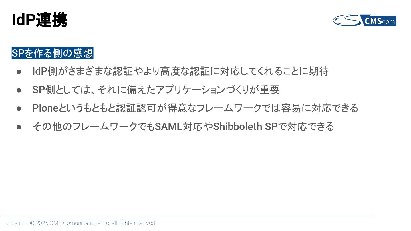 copyright © 2025 CMS Comunications Inc. all rights reserved. IdP連携