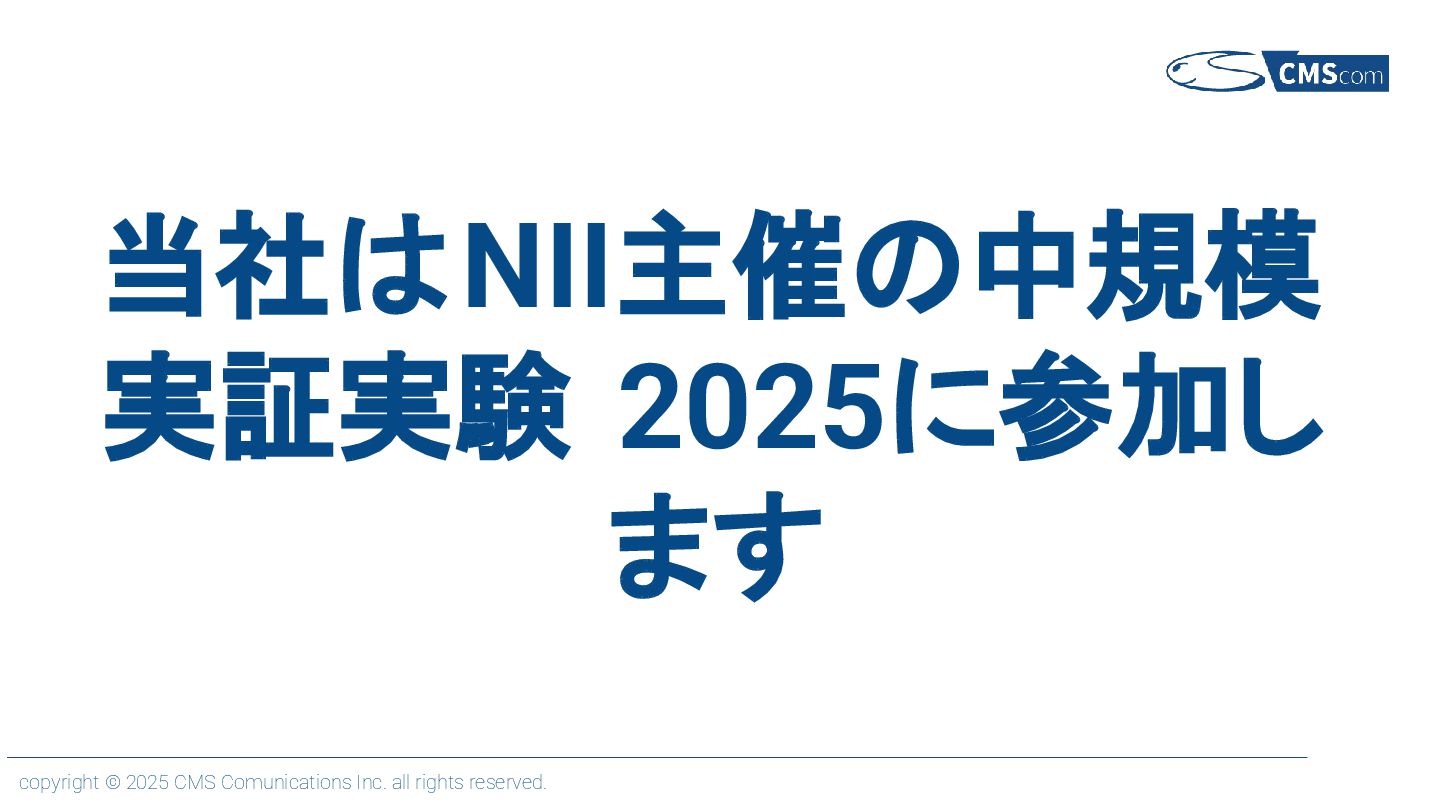 copyright © 2025 CMS Comunications Inc. all rights reserved. 当社はNII主催の中規模