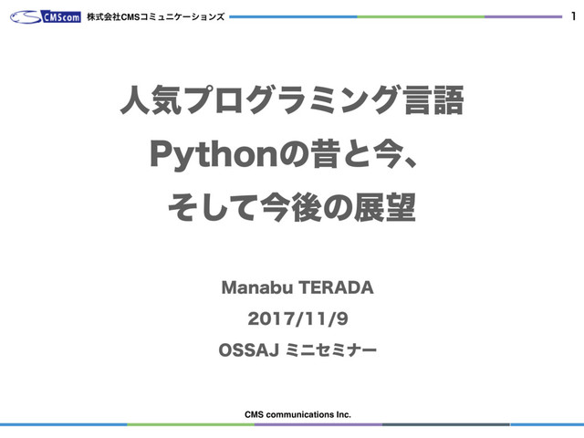 CMS communications Inc. ਓؾϓϩάϥϛϯάݴޠ 1ZUIPOͷੲͱࠓɺ ͦͯ͠ࠓޙͷల .BOBCV5&3"%" 044"+ϛχηϛφʔ