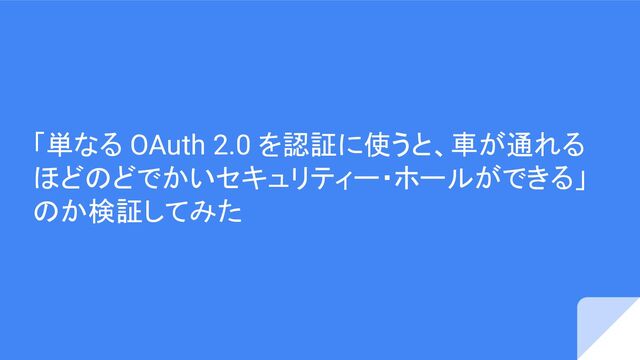 「単なる OAuth 2.0 を認証に使うと、車が通れるほどのどでかいセキュリティー・ホールが...