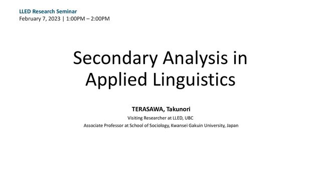 (in progress) • Data: AsiaBarometer Integrated Datasets, 2003-2008. • Respondents: 50,213 citizens living in 30 Asian jurisdictions • Afghanistan, Australia, Bangladesh, Bhutan, Brunei, Cambodia, China, Hong Kong, India, Indonesia, Japan, Kazakhstan, Kyrgyzstan, Laos, Malaysia, Maldives, Mongolia, Myanmar, Nepal, Pakistan, Philippines, Russia, Singapore, South Korea, Sri Lanka, Taiwan, Tajikistan, Thailand, Turkmenistan, United States, Uzbekistan, Vietnam • Representativeness: Nationally representative in most samples • Variables in focus: Dependent variable: Self-reported L2 English proficiency Independent variable: Gender; Education level Grouping variable: Generational cohorts