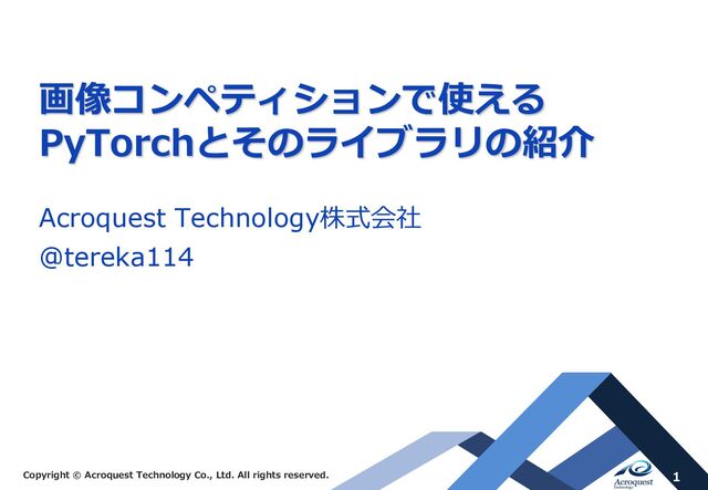 画像コンペティションで使える PyTorchとそのライブラリの紹介 Acroquest Technology株式会社 @tereka114