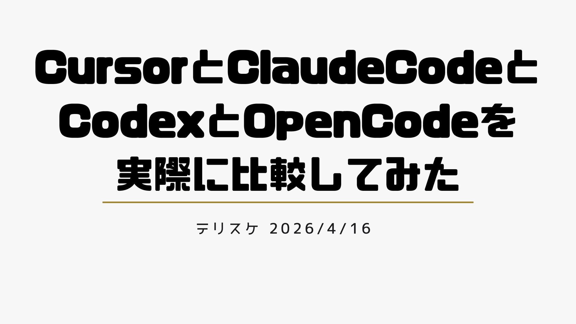 / 1 6 CursorとClaudeCodeと CodexとOpenCodeを 実際に比較してみた