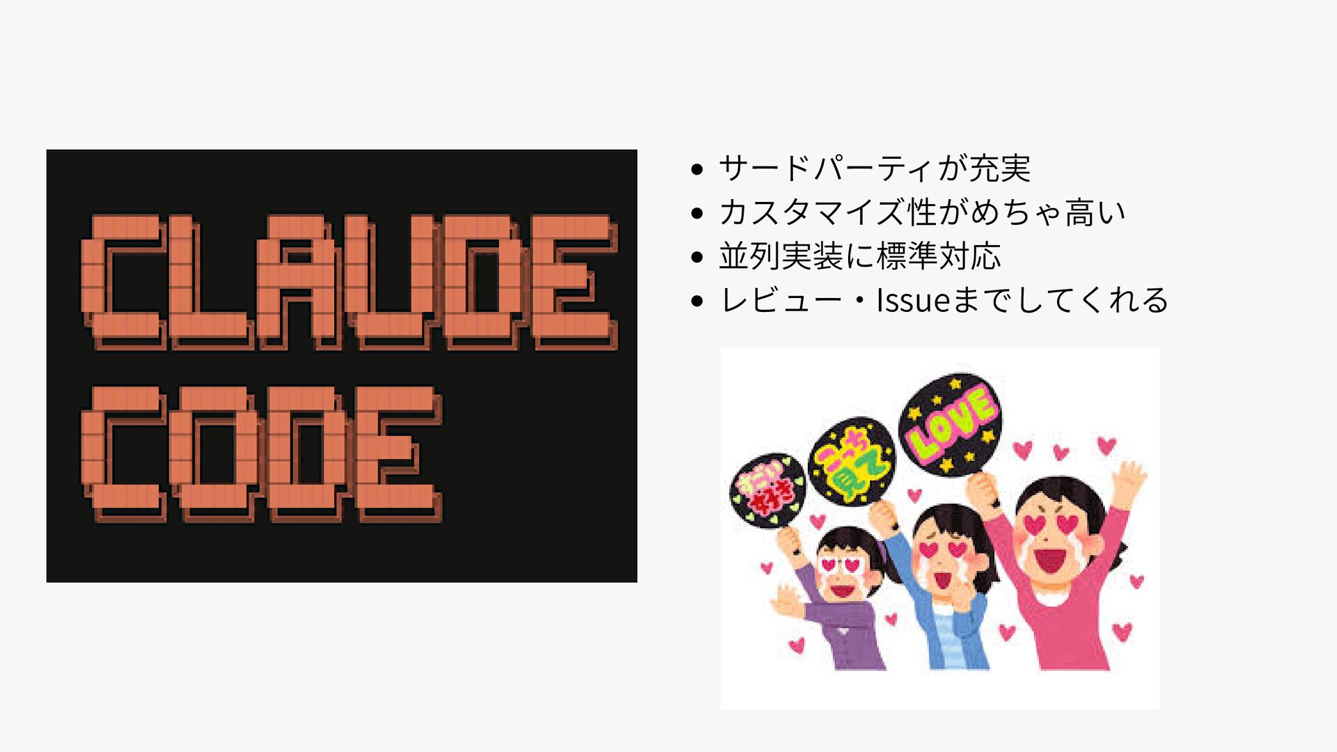 サードパーティが充実 カスタマイズ性がめちゃ高い 並列実装に標準対応 レビュー・Issueまでしてくれる