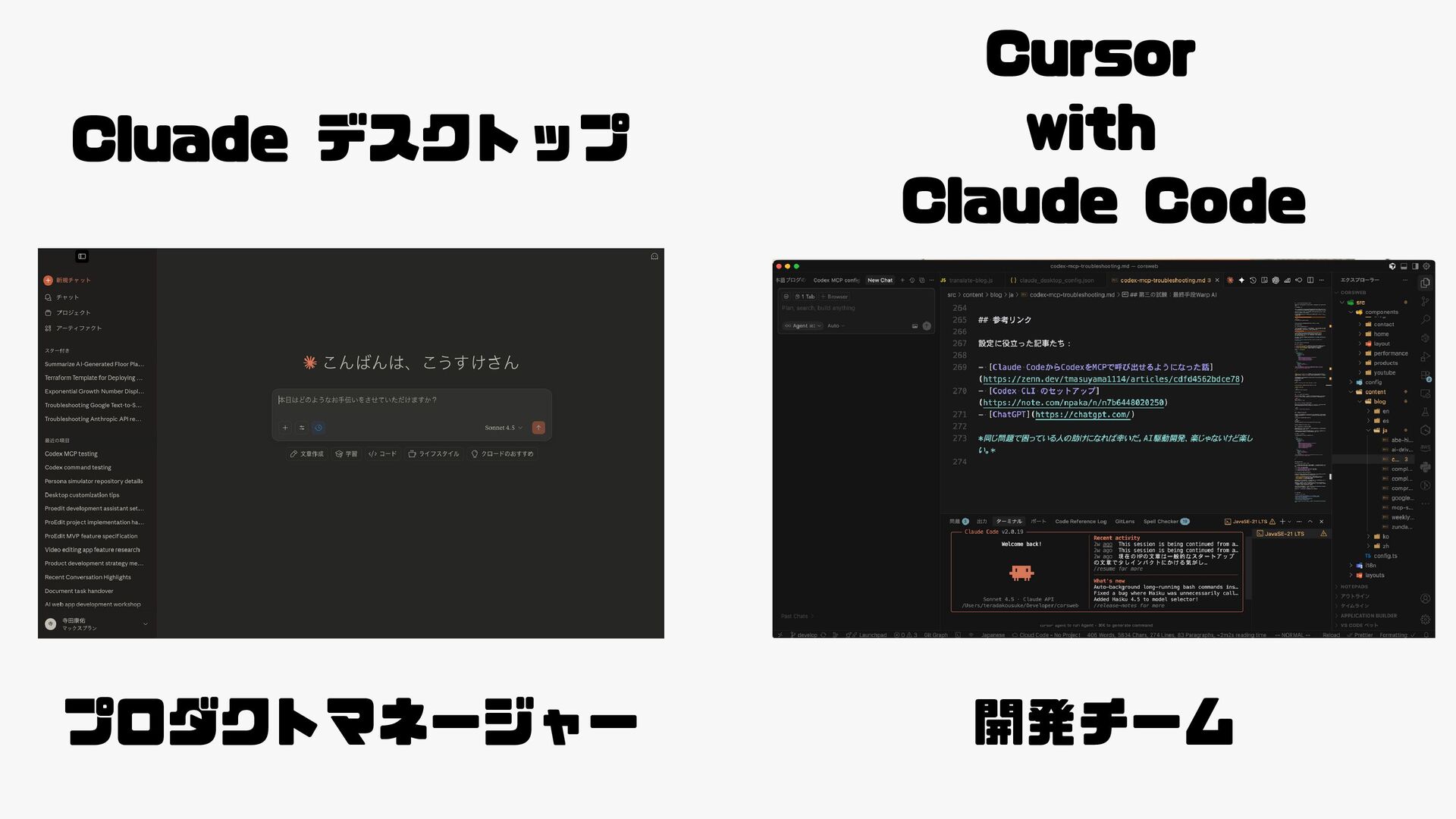 Cluade デスクトップ Cursor with Claude Code プロダクトマネージャー 開発チーム