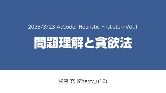 問題理解と貪欲法 松尾 充 (@terry_u16) 2025/3/23 AtCoder Heuristic First-step Vol.1