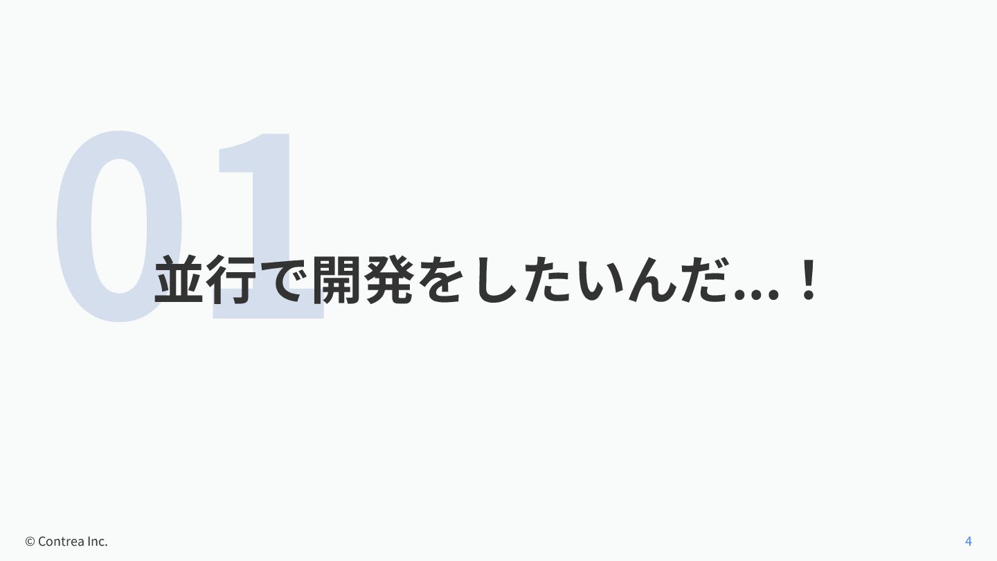 01 並⾏で開発をしたいんだ...! © Contrea Inc. 4