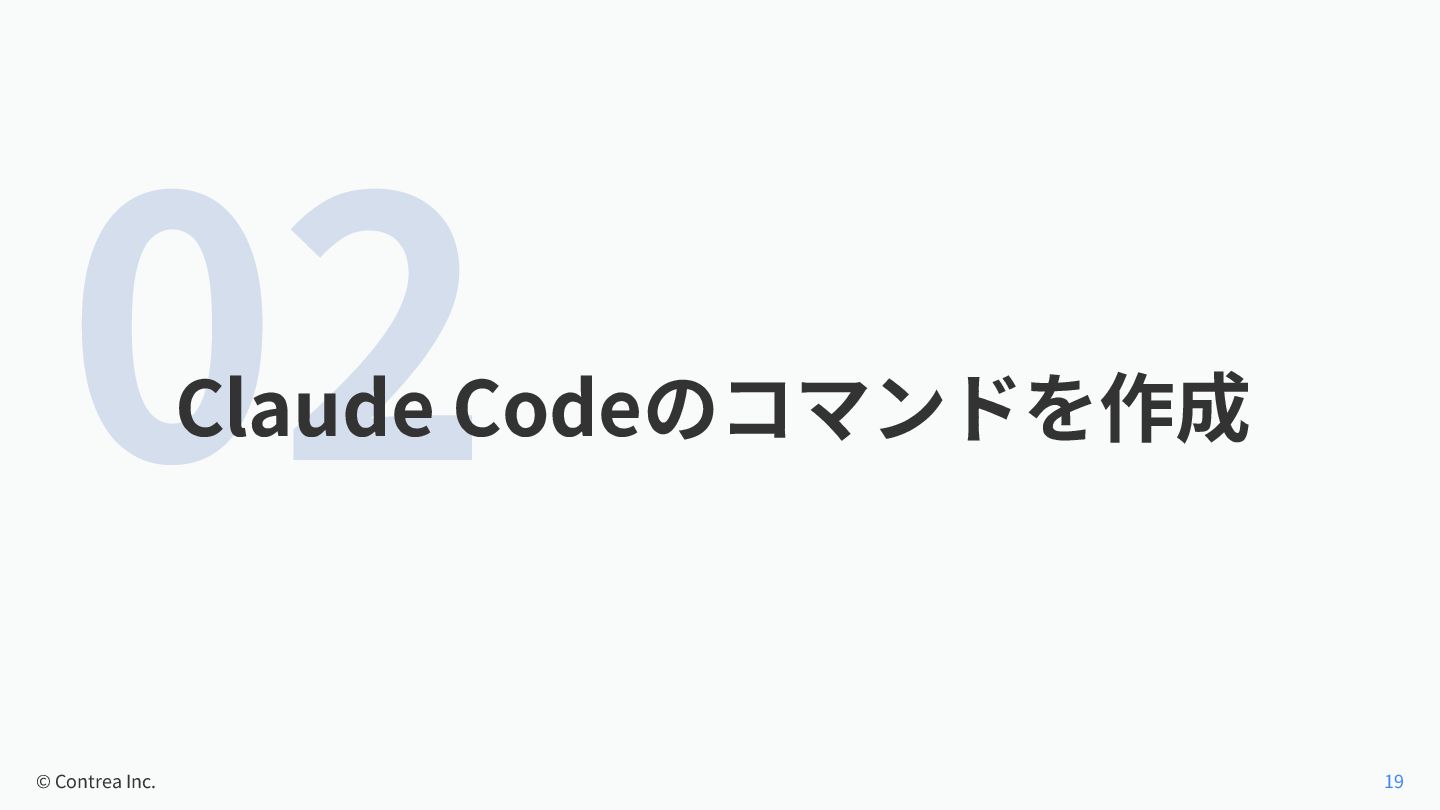 02 Claude Codeのコマンドを作成 © Contrea Inc. 19