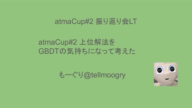 コンペ自体の概要は下記URLをご覧ください https://atma.hatenablog.com/