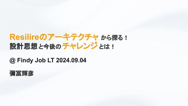 Resilireのアーキテクチャやプロダクト特性を踏まえて、どういった設計思想なのか、どういうユニークさを持った開発の現場なのかを発表します。