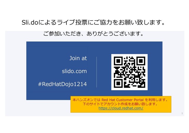 8⾏⽬ auto_config= value to FALSE 14⾏⽬ Add your Red Hat SSO username to username 17⾏⽬ Add your Red Hat SSO password to password You successfully registered da7290eb-3d3c-42ae-bb23- 848d48f3b1d4 to account 6871344. Successfully registered host rhdojo04rhel.ibmj-cloud-freeusage- p075.cloud … ①ツールインストール ②Insights設定ファイル変更 ③Insightsクライアント登録 yum install insights-client [root@server ~]# insights-client --register テキストエディタにはviをお使いください。 i ︓ ⼊⼒モードへ移⾏&編集 x : 1⽂字削除 esc ︓ ⼊⼒モード終了 :wq ︓ 保存+vi終了 ^ : 先頭へカーソル移動 $ : 末尾へカーソル移動 vi /etc/insights-client/insights-client.conf Red Hat Customer Portal の ログインIDとパスワード