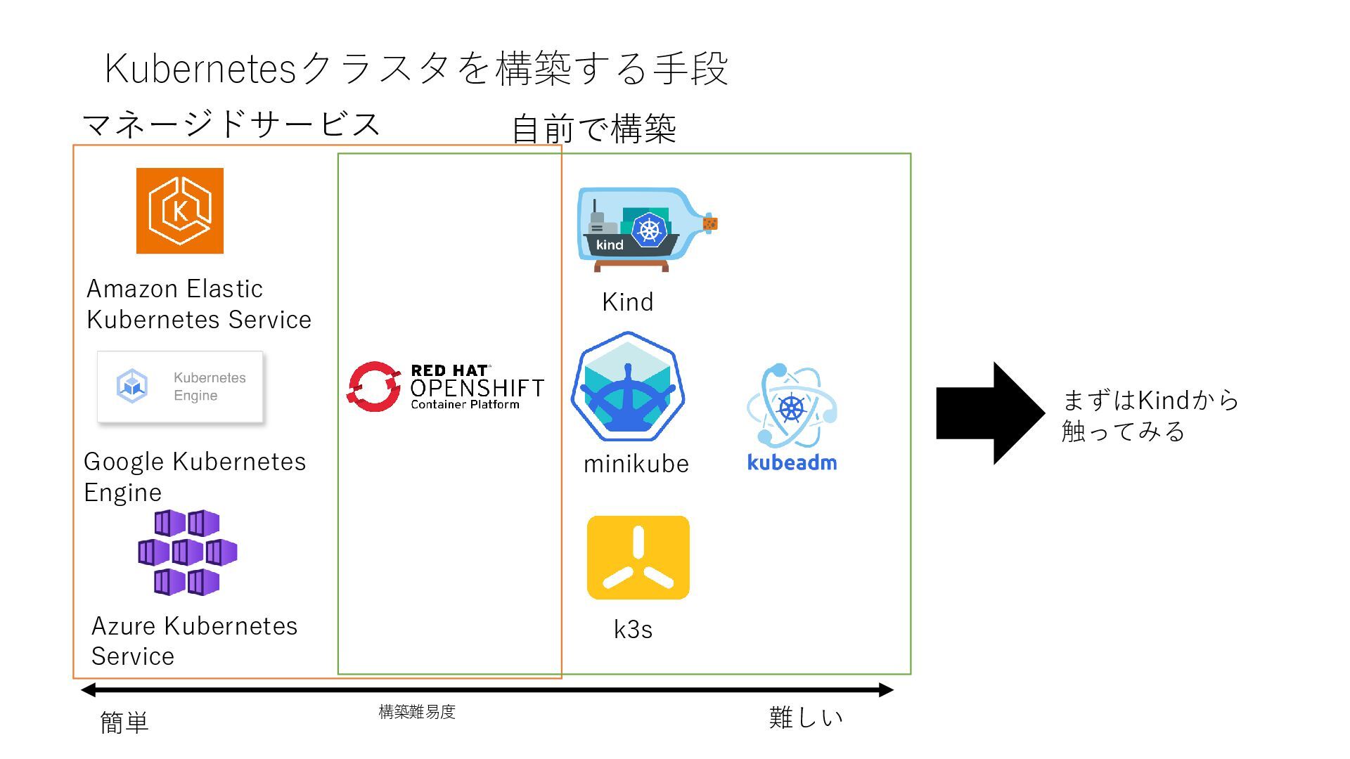Kubernetesクラスタ を構築する手段が複 数あるらしい