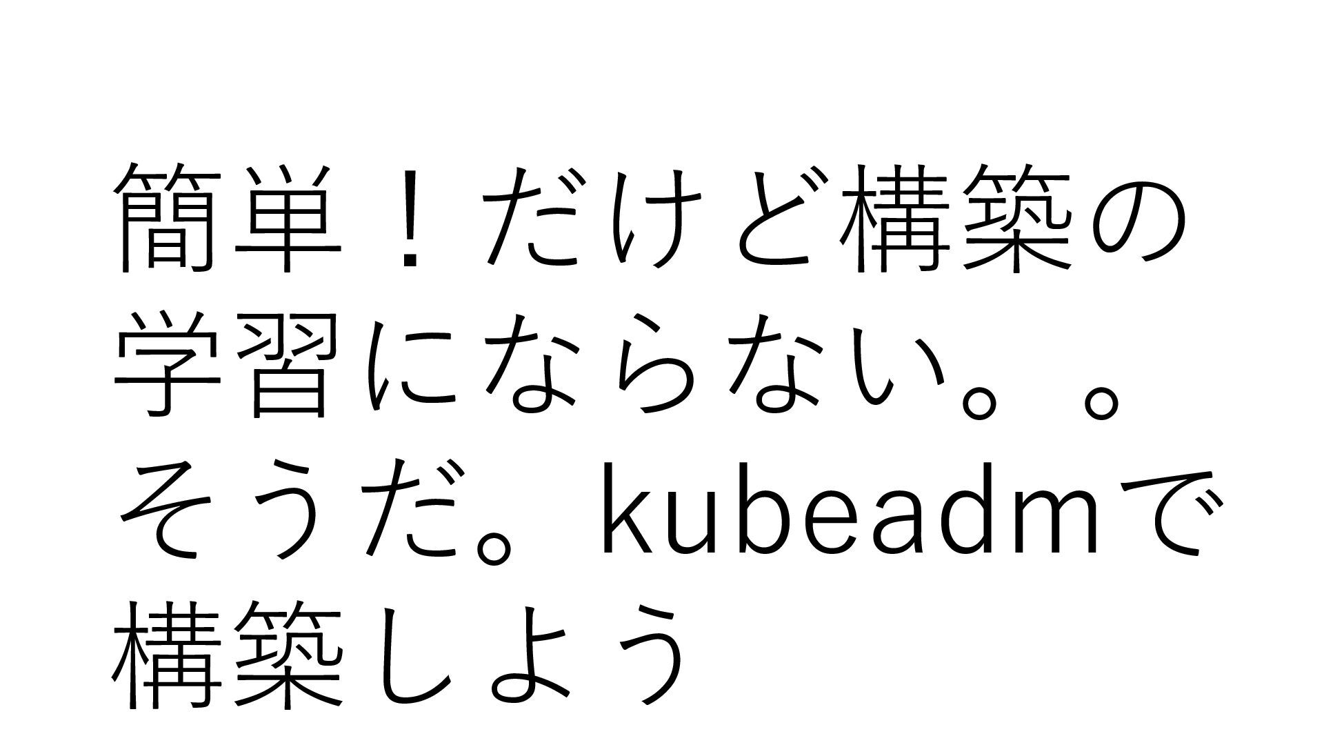 簡単!だけど構築の 学習にならない。。 そうだ。kubeadmで 構築しよう