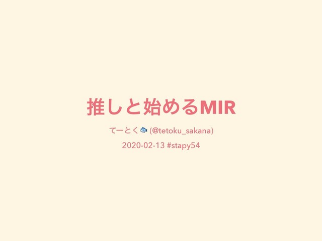 ਪ͠ͱ࢝ΊΔMIR ͯʔͱ͘ (@tetoku_sakana) 2020-02-13 #stapy54